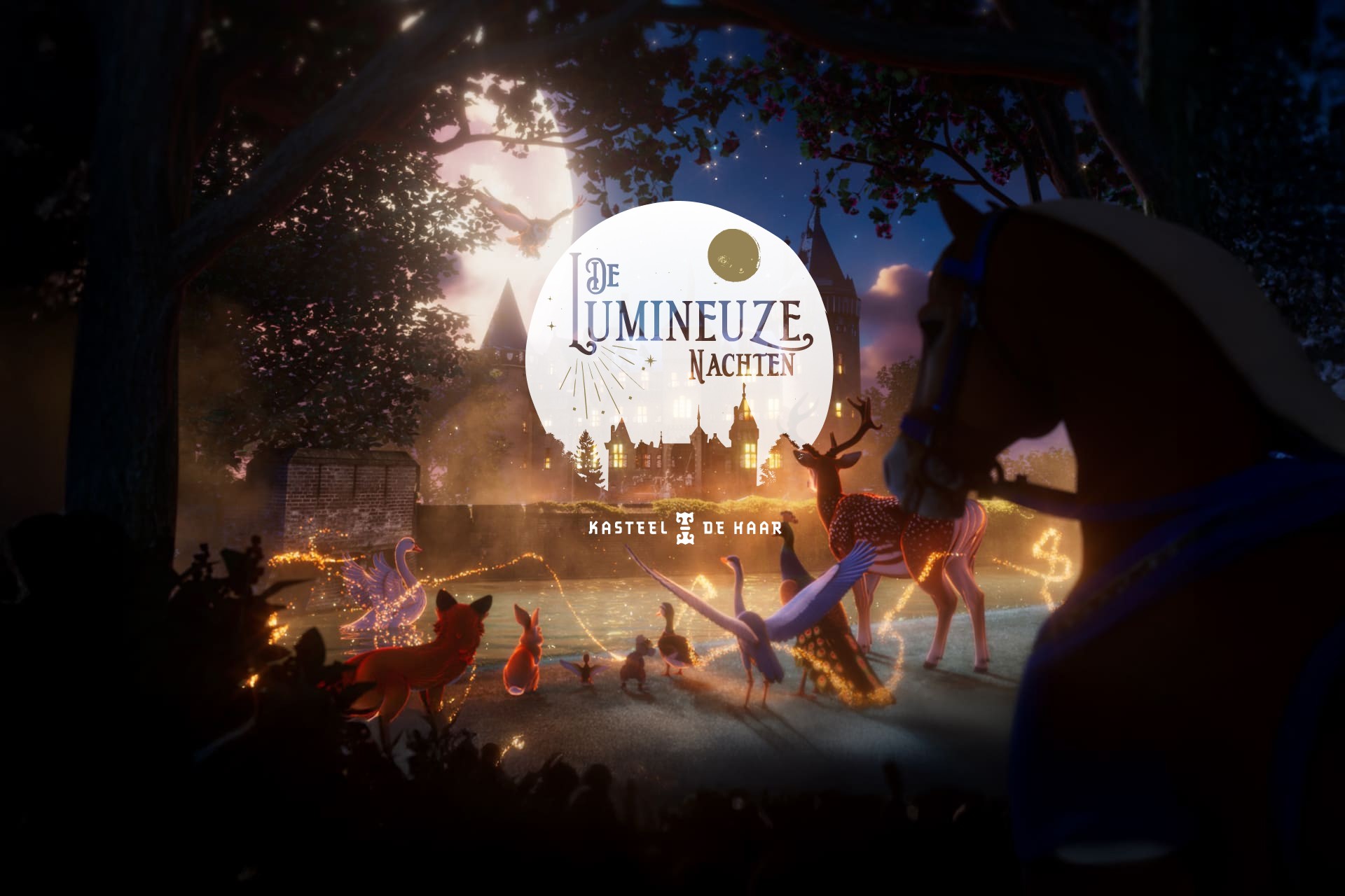Kasteel de Haar te Haarzuilens (Utrecht) komt op een wonderbaarlijke wijze tot leven tijdens deze magische winteravonden. Beleef deze winter een sprookjesachtige avond met het hele gezin. Zodra de schemering valt, ontwaakt het kasteelpark en komen de dieren van De Haar tot leven in een betoverend licht- en klankspel.